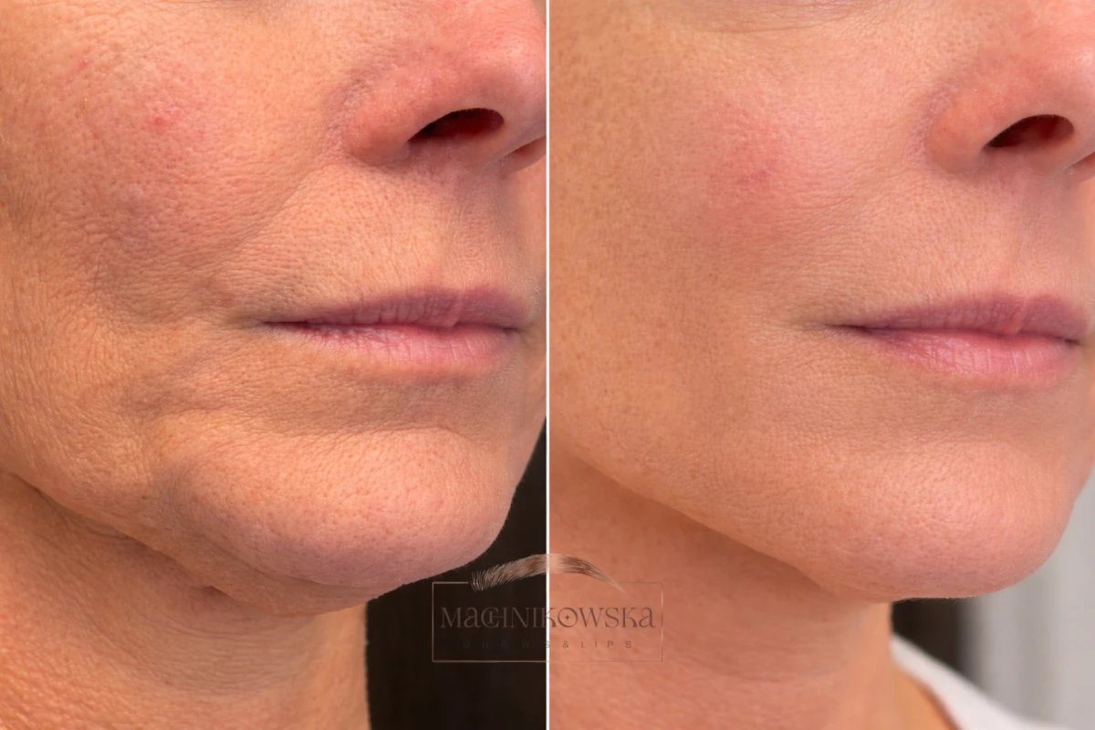 Część efektu bywa widoczna zaraz po zabiegu, jednak pełniejszy rezultat rozwija się w ciągu 2–3 miesięcy, kiedy skóra zaczyna intensywniej produkować nowy kolagen. Uzyskane efekty utrzymują się najczęściej od 12 do 18 miesięcy, w zależności od rodzaju nici, wieku pacjenta i stylu życia.